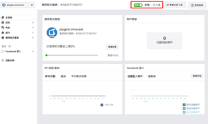 一切準備就緒後,我們回到「facebook for developers」,將右上角的狀態改為「已上線」