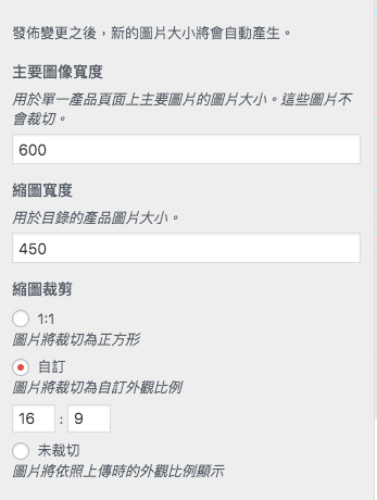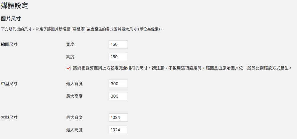 這些圖片的大小,也可以由後台的設定 → 媒體設定去設定每個切圖的大小尺寸。