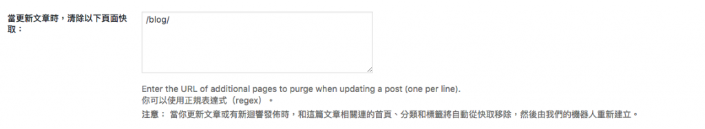 6. 當更新文章時,清除以下頁面快取(進階設定)