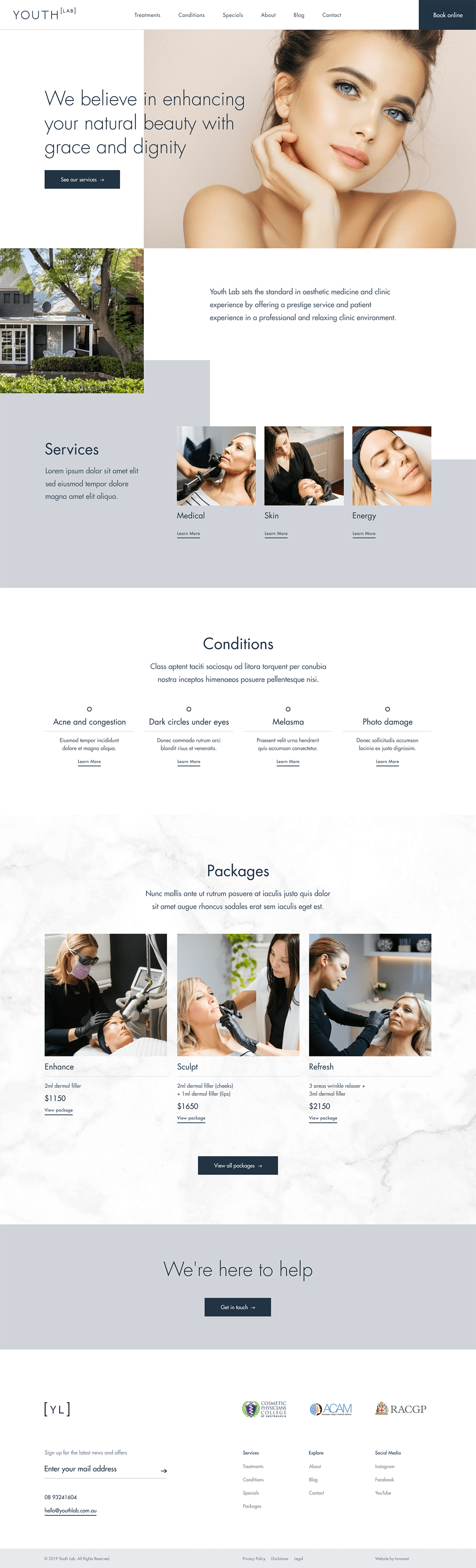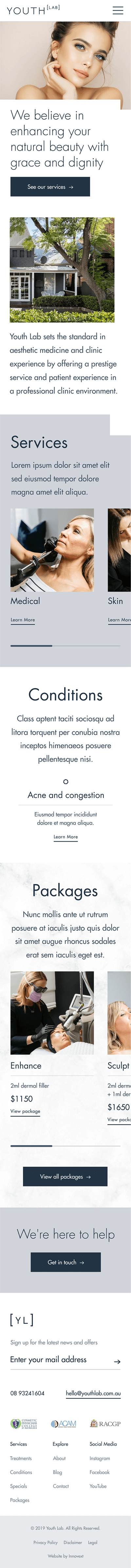 Youth Lab 是一家位於西澳伯斯的醫美診所,由 Dr Kate Jameson 領軍,帶領專業的團隊在當地掀起一股風潮。 客戶原本是採用 Squarespace 來做形象網站,但漸漸的發現因為沒有良好的資料架構,在網站維護以及更新方便比較困難,設計排版也缺乏一致性,使用者常常被大量的資料淹沒,不知道從何開始找尋相關資料。 因此找上因創科技來幫忙,由設計師 Reece 操刀設計規劃,除了將客戶品牌形象更明確地顯現出來之外,也大大的優化了使用者的體驗。